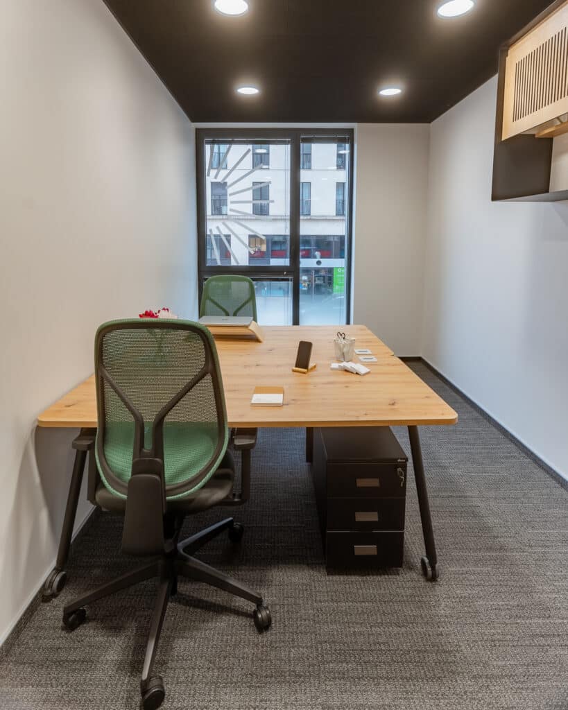 En plus d’un espace dédié d’environ 14 m² vous avez accès à l’ensemble des installations communes : cuisine équipée, espace de coworking, salles de réunion, phonebox. .