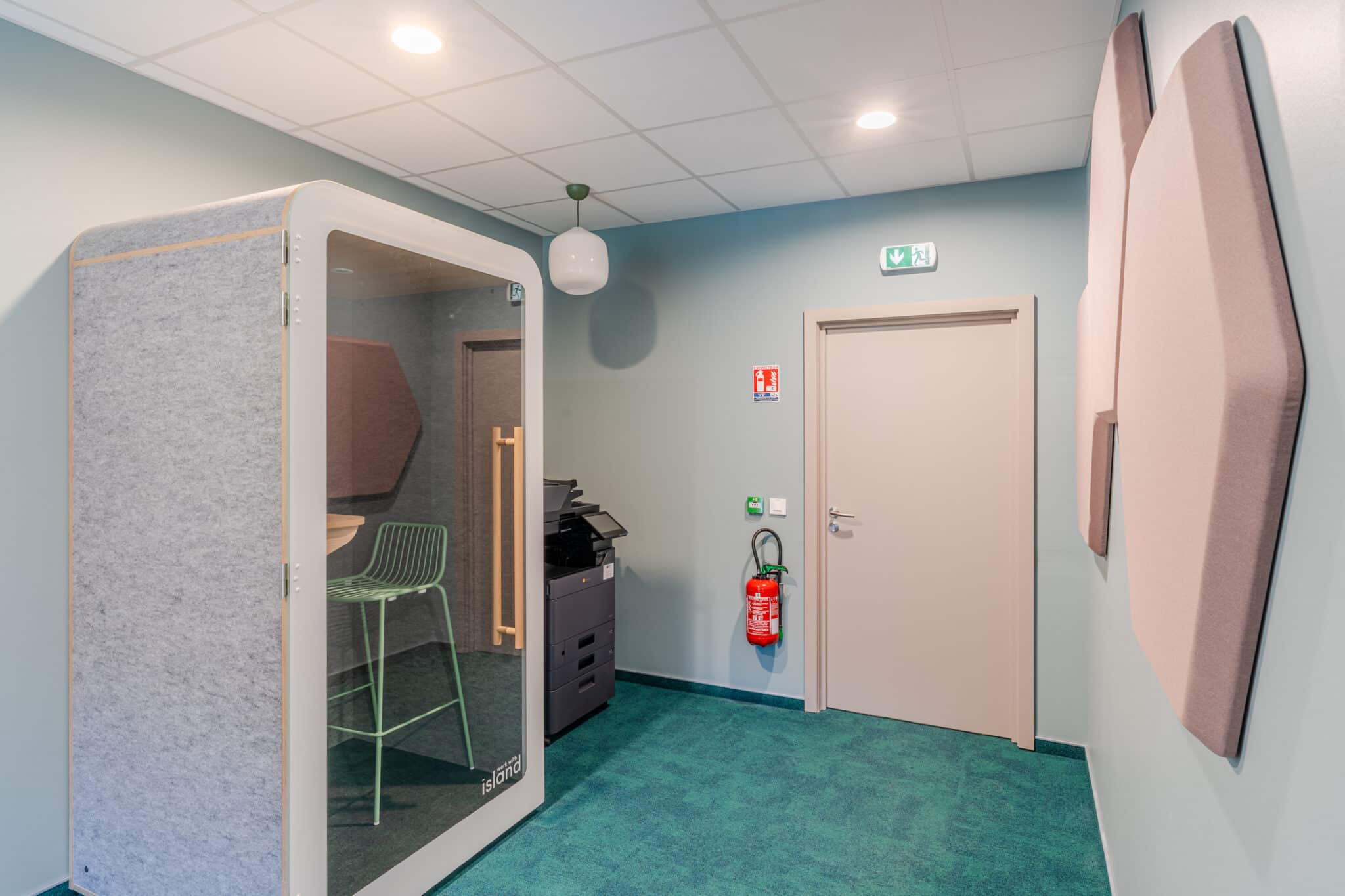 – Un éclairage avec détecteur de mouvement et chauffage réversible individuel par bureau.